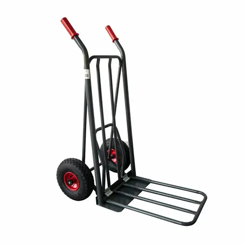Εργονομική λαβή για άνεση, στιβαρός σκελετός για μεγάλη διάρκεια ζωής, και ρόδες αέρα με μεταλλικές ζάντες για εύκολη μετακίνηση φορτίων σε εσωτερικούς και εξωτερικούς χώρους και δύσκολες επιφάνειες.